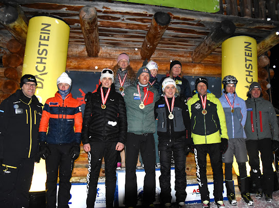 Die Medaillen wurden in den Klassen durch unsere Ehrengäste übergeben. Höhepunkt war natürlich die Übergabe der Staatsmeistermedaillen an Johanna Hiemer und Paul Verbnjak. Für Johanna an dem Tag ein emotionaler Moment, hat sie sich nach Sprint und Individual auch den ersten lange ersehnten Vertikal Titel gesichert . Nach dem Abspielen der Österreichischen Bundeshymne begleitet von einem Feuerwerk zu Ehren der Österreichischen- u. Staatsmeister lies das Team vom Schiklub den Tag in gemütlicher Runde ausklingen.