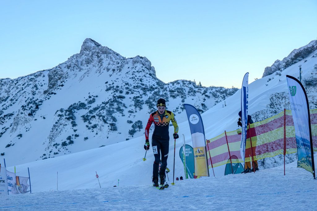 Am Sonntag beim Vertical am Füssener Jöchle war Marc Dürr von der DAV Sektion Allgäu Kempten bei eisigen Temperaturen am schnellsten. Er lief ein perfektes Meisterschaftsrennen. Über einen großen Teil der Strecke lief er in der Spitzengruppe mit, während David Sambale vom SC Immenstadt und teilweise auch Moritz Bauregger vom DAV Berchtesgaden für das Tempo sorgten. In einem Flachstück vor dem steilen Schlussanstieg zum Füssener Jöchle übernahm er die Führung und schaffte es, sich durch eine kurze Tempoverschärfung wenige Meter zu lösen. Den knappen Vorsprung von 5,6 Sekunden konnte er vor einer dreiköpfigen Verfolgergruppe bis ins Ziel halten und gewann das Mittag-Race in 25 Minuten und 39,6 Sekunden. Beim Spurt der Verfolger hatte Bauregger die Nase vorn und wurde Zweiter, eine Sekunde bevor zeitgleich David Sambale und Vorjahressieger Daniel Zugg vom SC Montafon aus Vorarlberg ins Ziel kamen. Dürr wurde mit seinem Sieg auch erstmalig Deutscher Meister im Vertical.