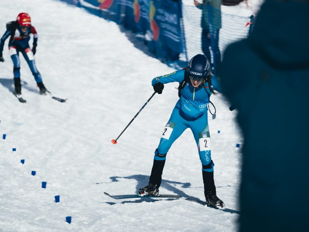 Zurück auf den Skiern beschleunigten die Athletinnen und Athleten in eine schnelle Abfahrt und demonstrierten dabei Kontrolle und Selbstvertrauen bei hohem Tempo. Anschließend ging es in eine lange flache Traverse, in der Ausdauer und taktische Positionierung eine Schlüsselrolle spielten. Die Entscheidung fiel auf den letzten Metern: Nach einer scharfen 180-Grad-Kurve ging es in den Zielanstieg, wo die Sportlerinnen und Sportler in den Skating-Modus wechselten und mit einem finalen Sprint über die Ziellinie stürmten.